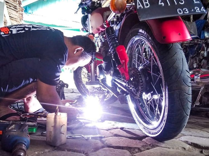 8 Tips Merawat Motor Klasik Dipanaskan Pertama Anda wajib memanaskan atau menghidupkan mesin selama beberapa saat. Hal itu bisa dilakukan setiap hari, cukup lima sampai 10 menit saja. Dengan begitu mesin akan bekerja rutin sehingga komponen di dalam jantung pacu tidak macet dan dapat bekerja lebih lancar. Kemudian tujuannya juga agar aki bisa terisi kembali serta oli mesin bersirkulasi, jadi kondisi motor pun terjaga. Pakai Standar Dua Cara merawat motor klasik selanjutnya adalah dengan menggunakan standar dua ketika dipajang di rumah. Bertujuan menjaga keawetan dan bentuk ban tetap sempurna. Selain itu guna menjaga kestabilan shock yang cenderung terbebani di sebelah kiri. Jadi nyaman dikendarai di jalan raya. Jaga Kebersihan Nah sebagai pemilik motor klasik, ada baiknya Anda rutin mencuci. Hal ini agar terhindar dari kotoran yang susah dihilangkan maupun karat membandel. Tentu Anda tidak mau bukan kendaraan menjadi keropos karena jarang dibersihkan. Rajin mencuci juga sebagai cara menjaga cat dan tampilan motor tetap sempurna. Rajin Ganti Oli Tips merawat motor klasik keempat adalah jangan lupa mengecek kondisi oli mesin, pastikan volumenya tidak berkurang. Untuk penggantian pelumas tergantung dari kebutuhan kendaraan. Bisa sebulan, tiga atau enam bulan sekali. Hal ini penting dilakukan agar oli tidak mengendap dan mengental karena jarang bersirkulasi. Lalu sebisa mungkin pakai pelumas berkualitas. Perhatikan Pengapian Salah satu masalah yang membuat motor tua atau antik sulit dinyalakan karena sistem pengapiannya rusak, oleh karena itu penting dijaga. Apalagi sebagian motor tua masih menggunakan sistem platina. Butuh penyetelan agar dapat berfungsi normal. Akan tetapi, jika tidak ingin repot Anda bisa mempertimbangkan untuk mengubahnya ke sistem CDI (Capacitor Discharge Ignition) yang minim masalah.